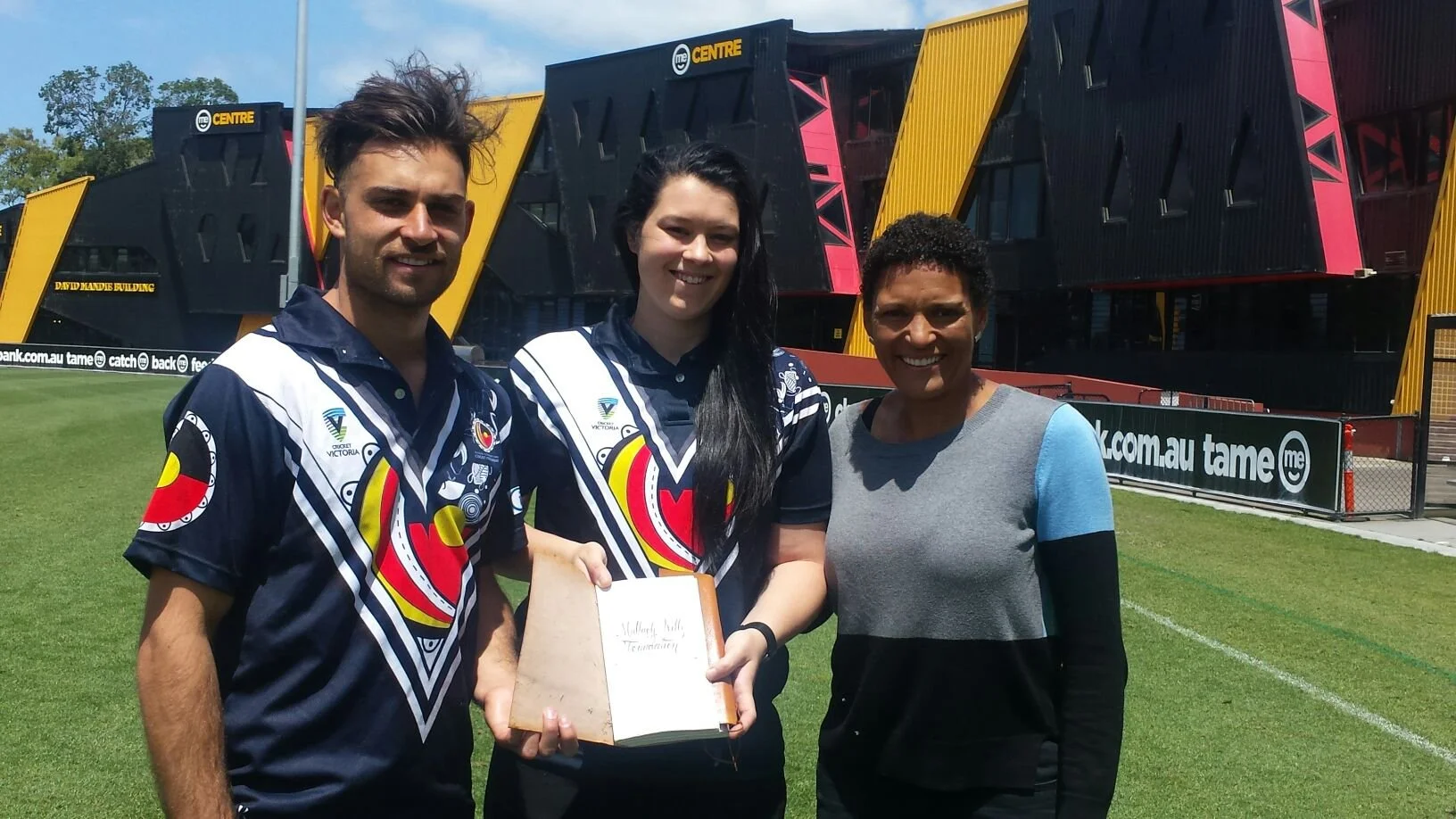 The Richmond Football Club welcomed the Mullagh Wills Foundation and the Message Book to the Punt Road Oval to commemorate the Aboriginal Cricket Team training session at the ground in December 1966 prior to the Boxing Day match against the Melbourne Cricket Club. As well as the players, Richmond CEO Brendan Gale included a message of support in the Message Book.
